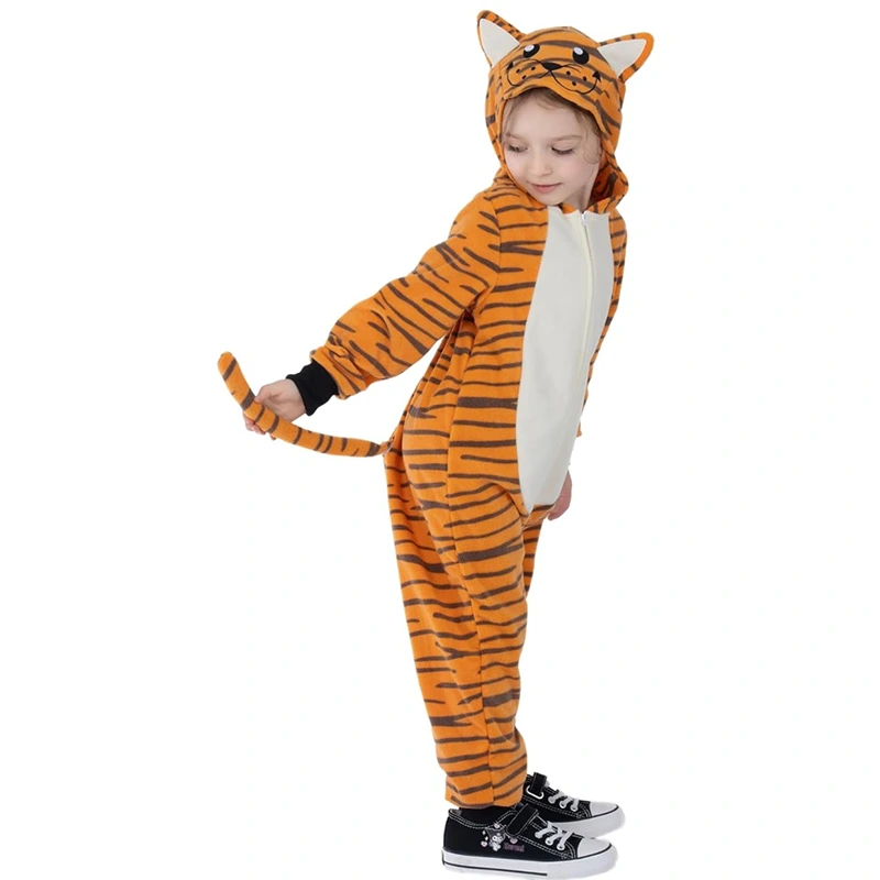 Disfraz de tigre para niños: este es un disfraz de tigre único para niños vestidos de cosplay, hecho de vellón estampado, cálido y acogedor.